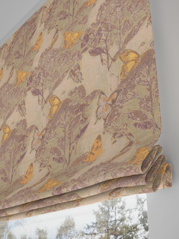 花以外の具象柄で初めての蝶をモチーフにしたファブリック。従来のSumiko Hondaの花柄に舞い降りては飛び立ち、コレクションを繋げてくれるようなイメージで創りました。様々な蝶がふわっと飛んでいるような、そして蝶自体が光のような印象のデザインです。地合いはさまざまな色を用いたヨコ糸を織り込みやわらかい風合いに仕上げました。