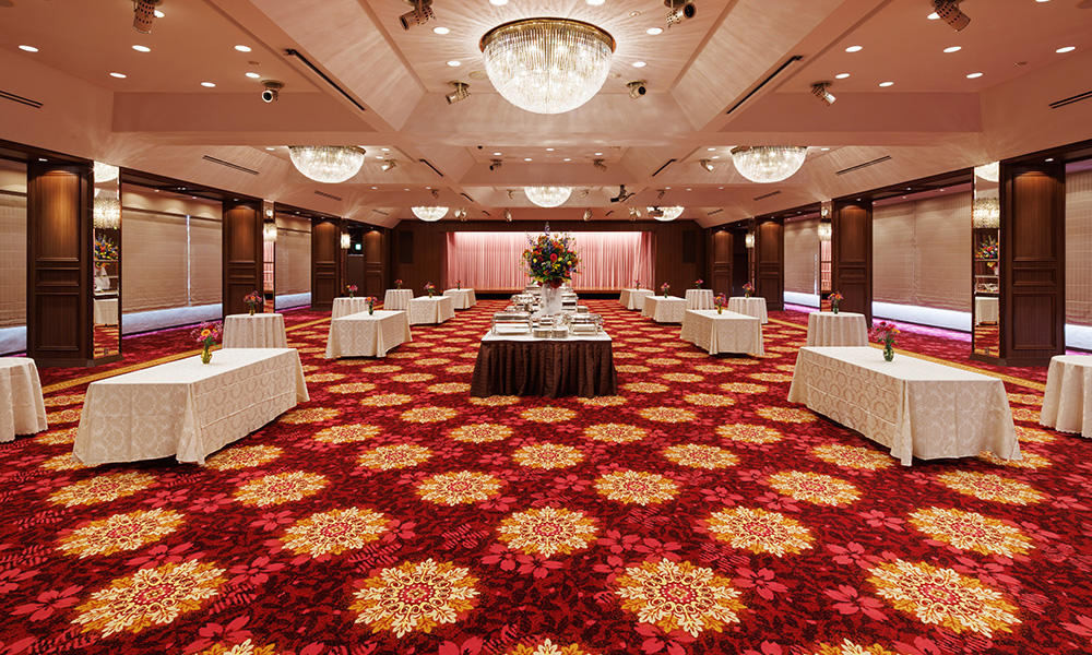 1872(明治5)年に創業し、西洋料理の草分けとして文明開化の一翼を担ってきた上野精養軒。2025年の改装にあたり、大宴会場に特注カーペットとタイルカーペットを採用いただきました。