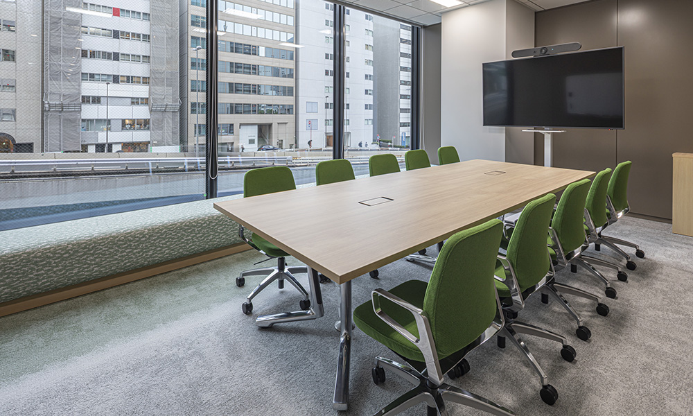 会議室 床:タイルカーペット(インターフェイス Consider 4314-006-000、Consider/Escape 4316-011-000、Escape 4314-028-000)