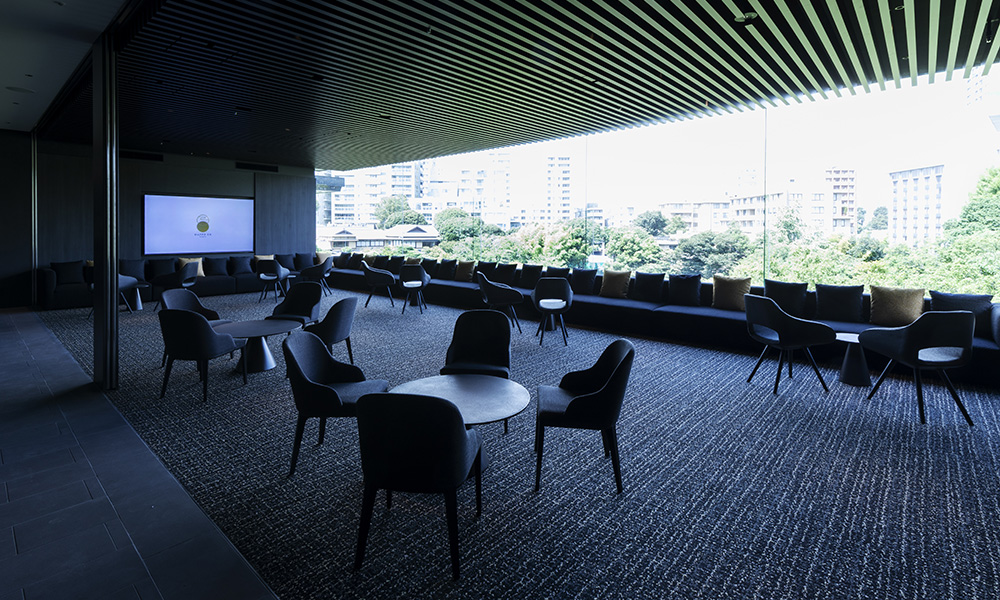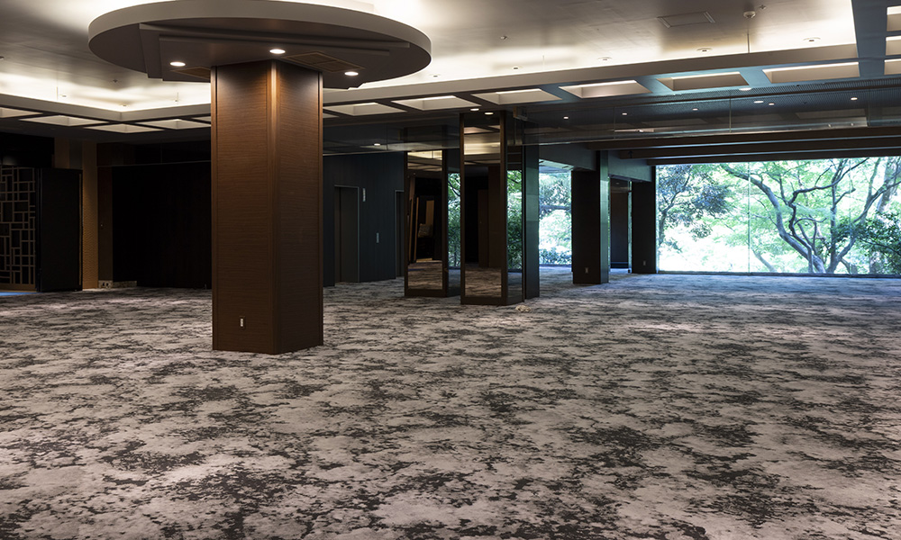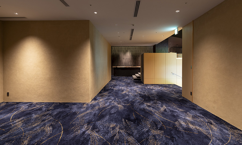 館内では、そのテーマと既存のデザインに沿った内装のリニューアルが各所で行われました。床材には別注ロールカーペットをはじめ、ビニル床タイル(ワックスフリーリファインバックエグザ)やタイルカーペット(インターフェイス、モードスタイル)をお選びいただきました。また、カーテンとして、ファブリック(フェルタ)を採用いただいています。