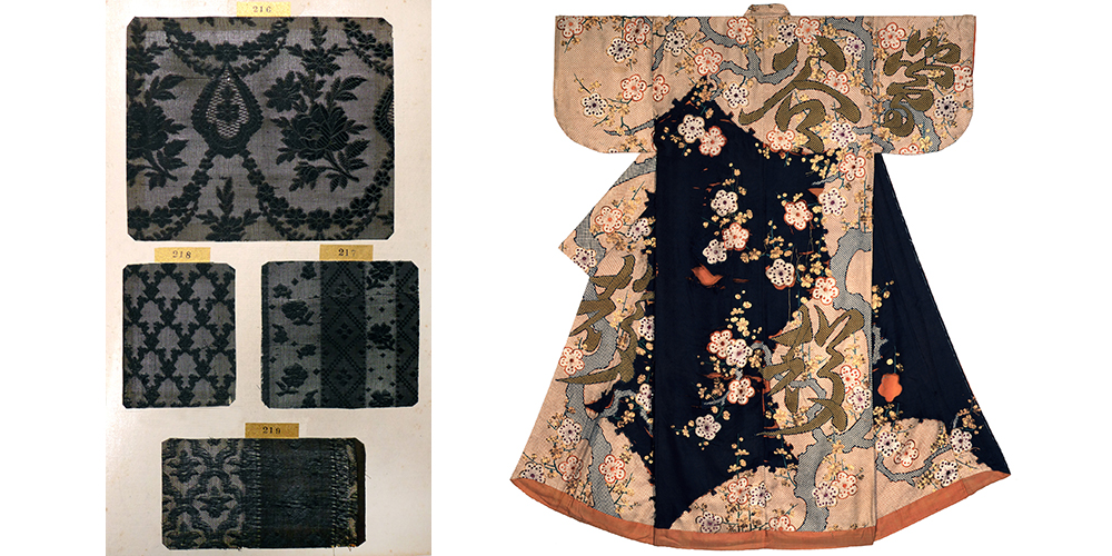 本展では、明治から現代に至る作品・資料などを、黒で表現されたデザイン、そして現代に受け継がれる黒の表現まで、3章構成で展示し、染織の中で息づく黒の魅力を紹介します。