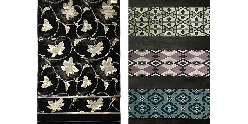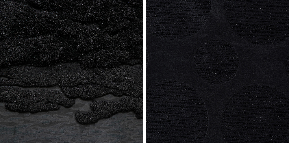 美しい色を組み合わせ、多色で豪華であることが特徴の一つである西陣織。川島織物セルコンは2024年のミラノデザインウィークで、あえてそこから色を取り去り、黒一色でファブリックの魅力を表現した「百の黒」を発表しました。本章では、「百の黒」よりその一部を紹介します。