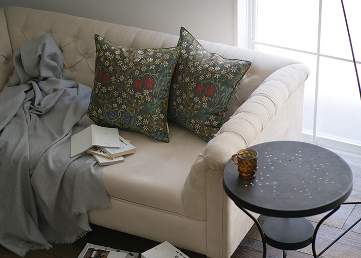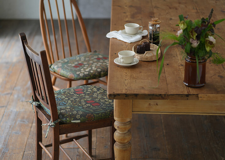 1892年にウィリアム・モリスの一番弟子ジョン・ヘンリー・ダールによって作成されたハンドプリントのデザインです。咲き乱れる色とりどりの小花を表現し、かわいらしいファブリックに仕上げています。