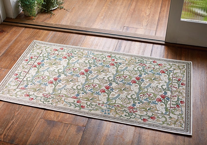 ブロックプリントの壁紙として1899年に、ウィリアム・モリスの一番弟子ジョン・ヘンリー・ダールによってデザインされたものです。 少し光沢感を強調し、エレガントで女性的な雰囲気の織物に仕上げました。