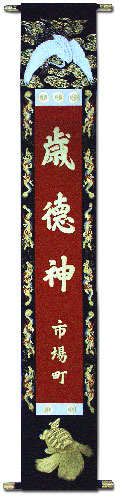 大社町・吉兆幡「市場」 地元では吉兆さんと呼ばれる祭に使われる。 高さ10メートル、幅1メートルあまりの錦の幡。