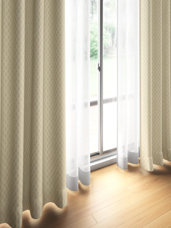 クラシカルな小紋柄を凹凸で表現したボリューム感のあるファブリックです。柔らかな光沢のベース地にリング形状のヨコ糸による柄表現は、品格を感じさせます。