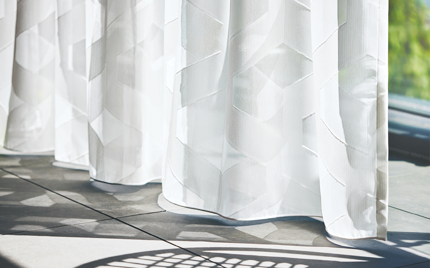 カットジャカードによるパターン表現。密度感の違いで光の入り方が変化して美しい陰影を描く印象的なレースです。