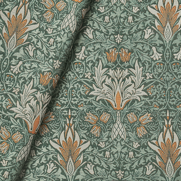 クラシックな柄を小さく使いやすい大きさにしています。意匠糸でナチュラル感を加えて、少し鮮やかな色をアクセントにして重厚過ぎないようにしました。クラシック感とモダンさのある2配色です。
