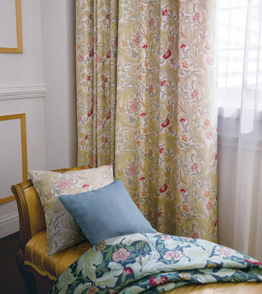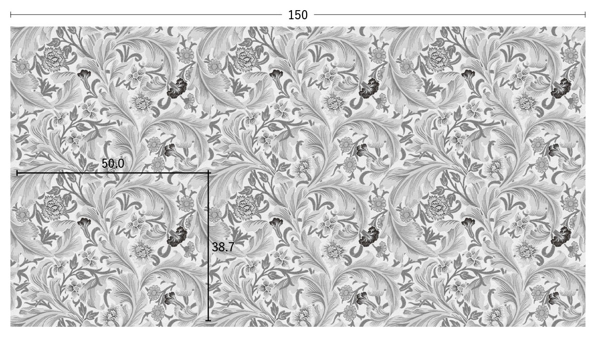 1912年にウィリアム・モリスの一番弟子であるジョン・ヘンリー・ダールが、木版壁紙としてデザインしたものです。アカンサスの葉を緻密に織り、柔らかなボリューム感を出しています。