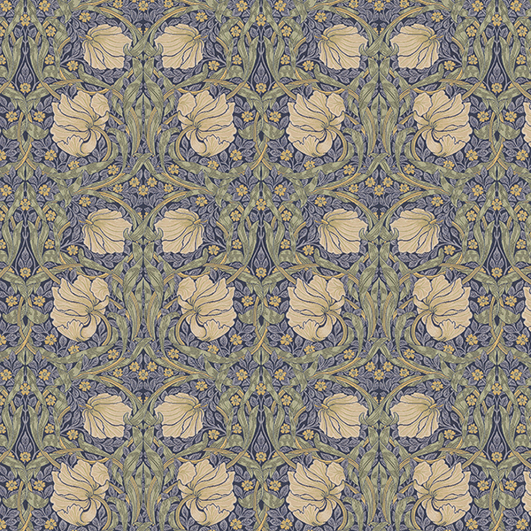 1876年に製作されたウィリアム・モリスの壁紙のデザインで、左右対称にルリハコベの花が渦巻いています。当時、モリスの自邸「ケルムスコット・ハウス」のダイニングルームの壁面を飾っていました。