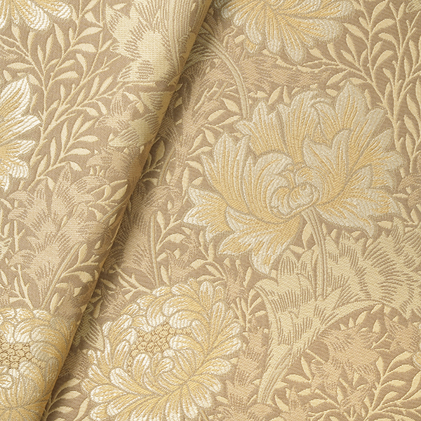 日本の花である菊にインスピレーションを受けて、1877年にウィリアム・モリスが壁紙としてデザインしました。メリハリのあるデザインを、染色・加工手法にこだわって表現し、ボリューム感を出しています。