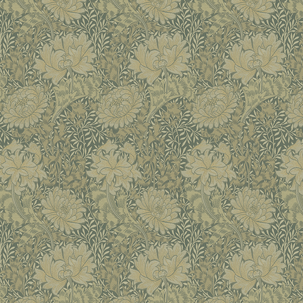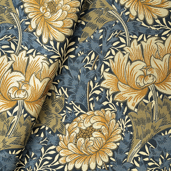 日本の花である菊にインスピレーションを受けて、1877年にウィリアム・モリスが壁紙としてデザインしました。メリハリのあるデザインを、染色・加工手法にこだわって表現し、ボリューム感を出しています。