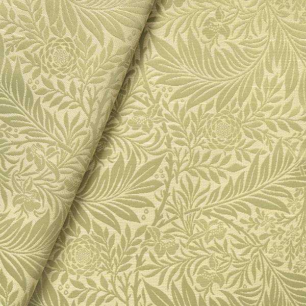 飛燕草(ひえんそう/デルフィニュウム)をモチーフに1875年に製作されたウィリアム・モリスの壁紙のデザインを織物にしたものです。ざっくりとした地組織が、ナチュラルであたたかな表情を作りあげています。
