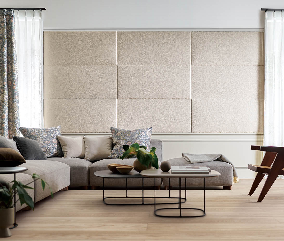ウィリアム・モリスが1879年にハンドブロック壁紙のパターンとして生み出した、大変人気のあるデザインです。光沢のあるベースに、様々な飾り糸を織り込むことで、美しさが引き立つ柔らかい風合いに仕上げました。レリーフ調の柄が立体的に見えながらも、無地調で使いやすいファブリックです。