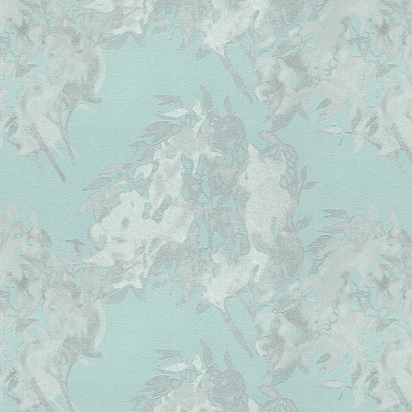 揺れる白樫の葉の影と、紫陽花の葉の影で構成したモダンなシルエット柄。古来、家を守る樹木として植えられる白樫。葉の影は光沢糸と織組織で、地合は柔らかい手触りのモール糸を用いました。落ち着きのある静けさを演出します。
