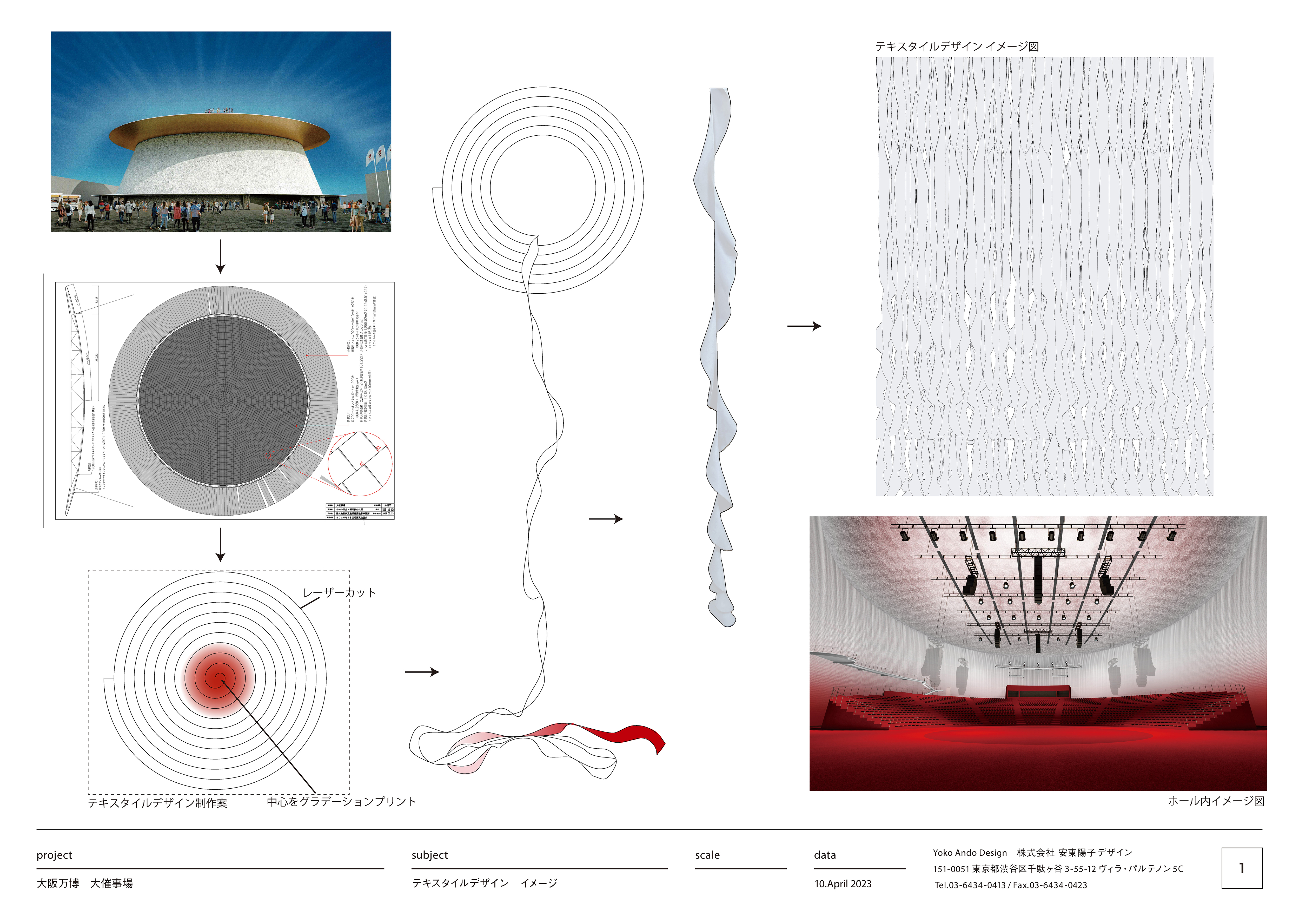 EXPOホールの基本設計・監修を手掛けた伊東豊雄建築設計事務所の城代晃成氏と、EXPOホールのテキスタイルのデザインを担当されたテキスタイルデザイナー・安東陽子氏のコメントとともに、制作過程をご紹介します。