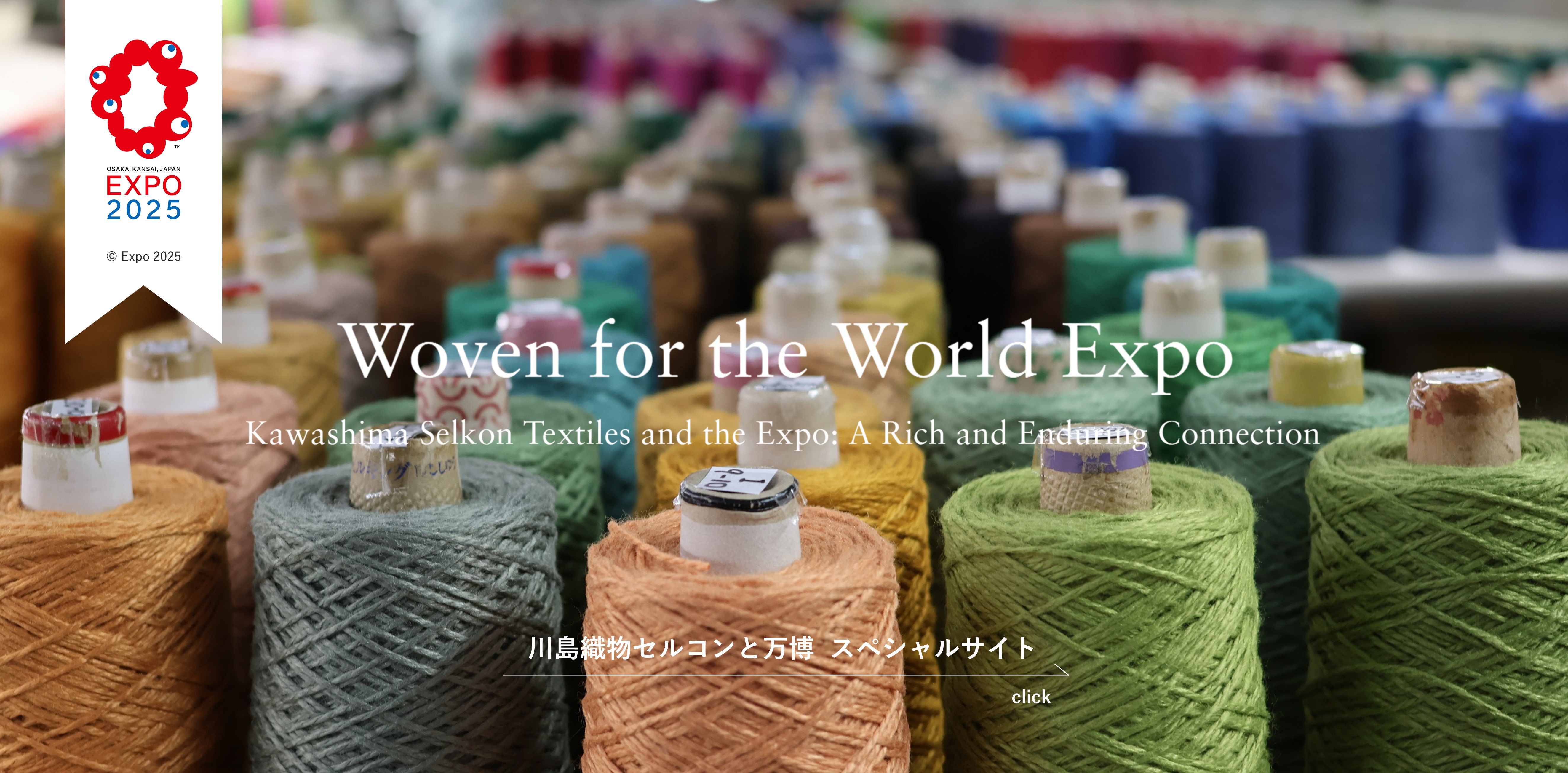 川島織物セルコンは、EXPOホールをはじめとし、20を超える施設・パビリオンに、多種多様なファブリックや床材を50品目以上納入しています。それらの取り組みの一部を特設WEBサイト「川島織物セルコンと万博 Woven for the World Expo」にてご紹介しています。美しい納入作品の数々をぜひご覧ください。
